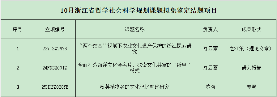 根据浙江省哲学社会科学工作办公室印发文件《浙江省哲学社会科学规划课题结题实施细则》,现将10月申请免鉴定结题材料予以公示。公示期为10月22日至10月28日。